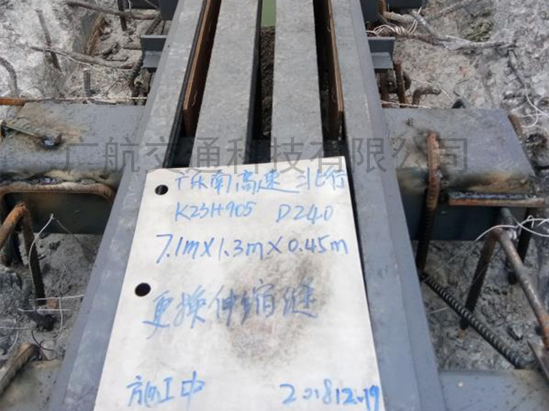 2018年12月19日,廣東廣航交通對(duì)其北行方向進(jìn)行伸縮縫更換,使用廣航交通生產(chǎn)的D240型橋梁伸縮縫。